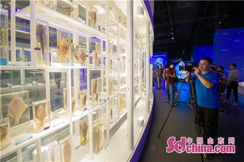 在多媒体互动式的海洋科普馆,震撼的3D设备、各种海洋生物标本,以及“蛟龙号”仿真模型吸引了采访团记者的瞩目。这里以“聚焦海洋”为主题,意在展示海洋、科学、人三者之间的关联,把多媒体和标本、环境、绘画结合到一起,立体呈现出一种前所未有的展示形式。